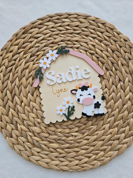 Welcome your new bundle of joy with our beautifully handcrafted Cow Barn Western wooden Baby Girl name announcement sign. This personalized piece is the perfect addition to your nursery decor. Celebrate the arrival of your little one in style with a custom touch that will be cherished for years to come. A unique keepsake for your growing family.