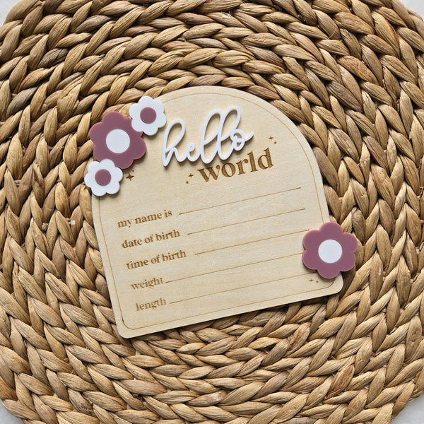 Floral Hello World Birth Statistic Sign
