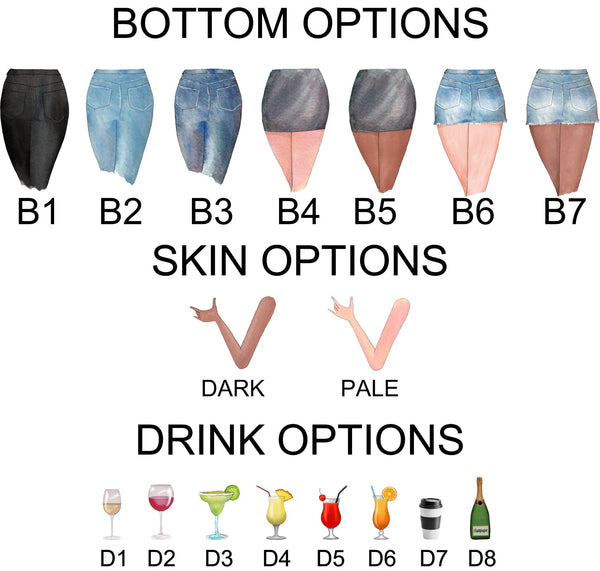 It is custom made with choices of jacket, hair, pants, skin color, drinks and quote!