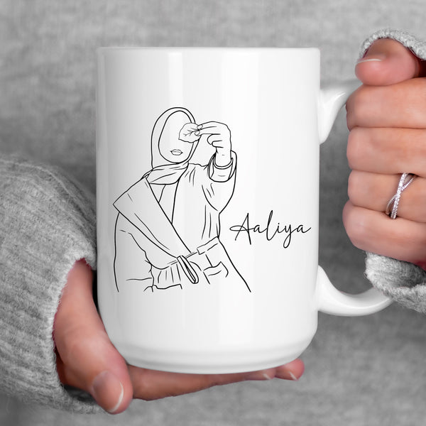 Custom made and personalized Muslim hijabi girl illustration print ceramic mug.