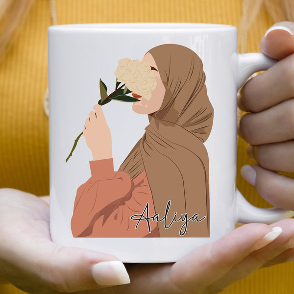 Custom made and personalized Muslim hijab girl illustration print ceramic mug.