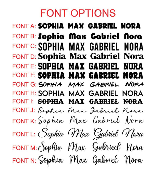 To order please choose the size, color for the name and in the personalization box include the name and font style you want for the name!