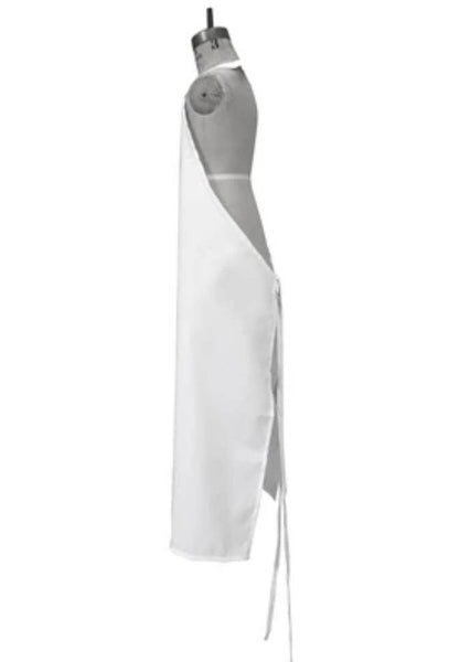 White aprons are one size and measures 34" x 32" with a 36" waistband and 24" neck strap.