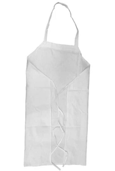 White aprons are one size and measures 34" x 32" with a 36" waistband and 24" neck strap.