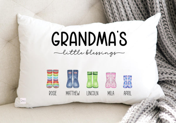 Personalized Grandma pillow with Grandkids Custom Boot Design.