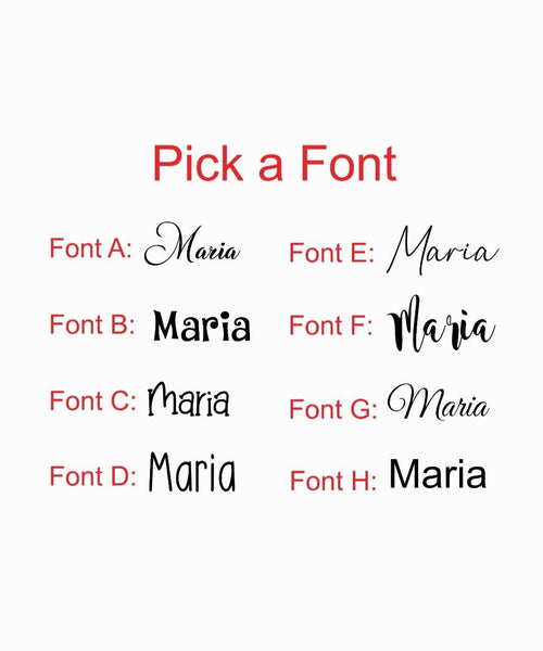 Please include the font option you want, the name you want on the stockings and color you want for the name.