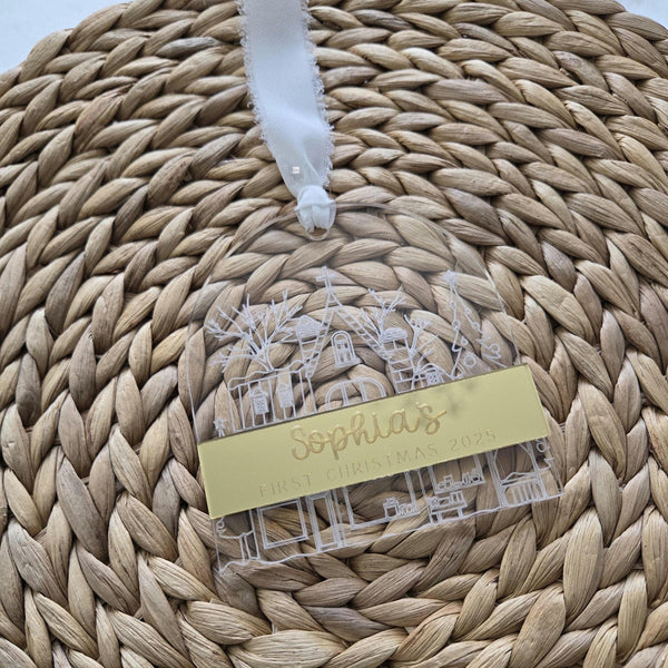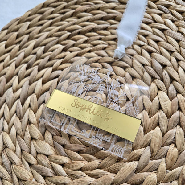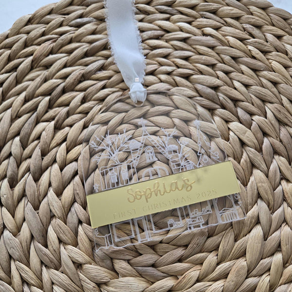 Looking for the perfect addition to your Christmas tree this year? These Acrylic Christmas Village engraved Ornaments with gold Acrylic name tags are just what you need! Add a personal touch to your holiday gift-giving with these adorable and customizable ornaments. Made with high-quality materials, these ornaments will make your Christmas tree stand out and spread joy to your loved ones. Get yours today and make this Christmas extra special!